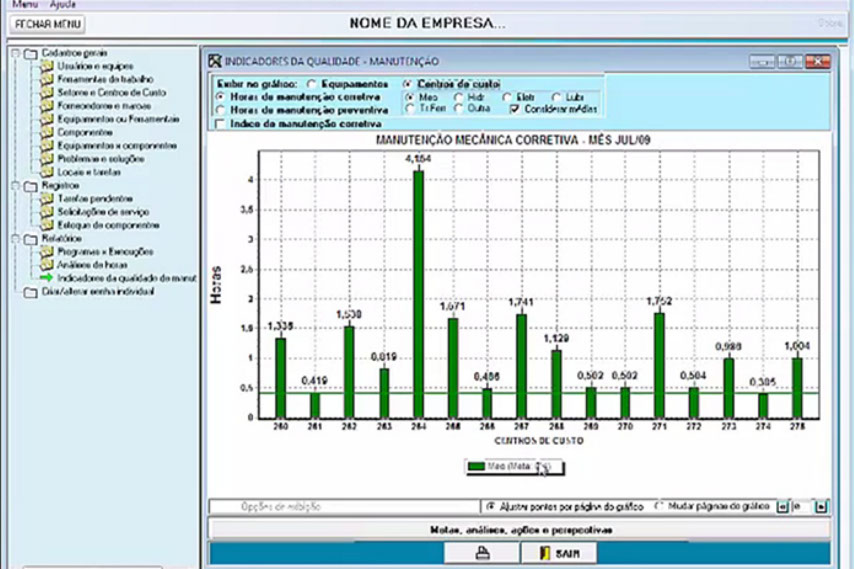 O programa oferece todos os recursos necessários ao registro, planejamento, programação, execução e registro de manutenções corretivas, preventivas e preditivas, com relatórios gráficos de e indicadores da qualidade das manutenções executadas.