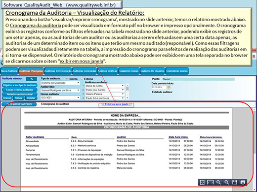  Gera o cronograma de auditoria, informando quando há conflitos de horários;