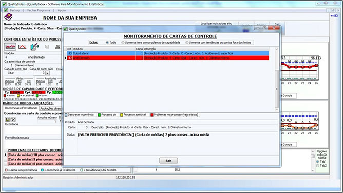  Painel de controle geral do status de cada carta, com base nas tendências e nos Ãndices dos processos, em tempo real.