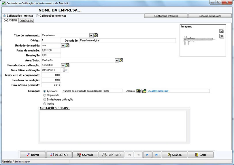 Módulo QualityMeasure - Controle de Calibração de Instrumentos de Medição: