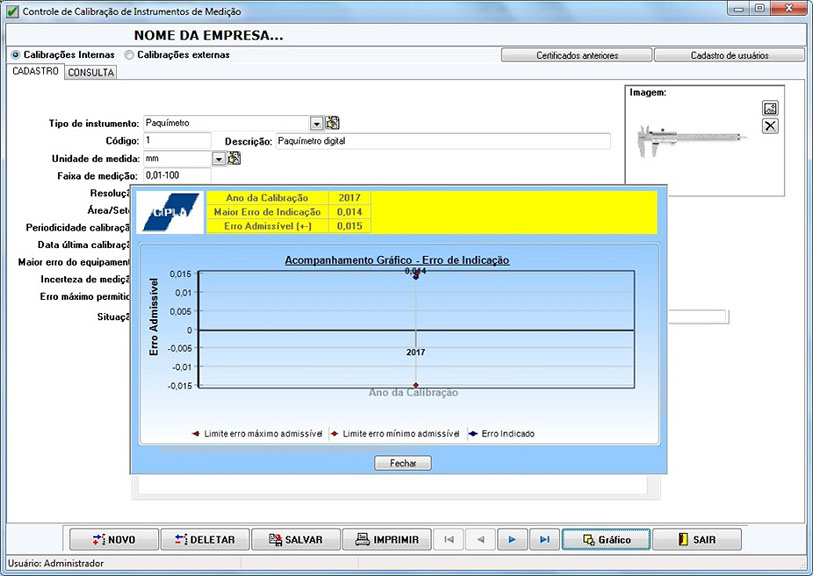 Registro completo de todas as caracterÃsticas de cada instrumento de medição, controles de perÃodos de vida útil e prazos de calibração, com